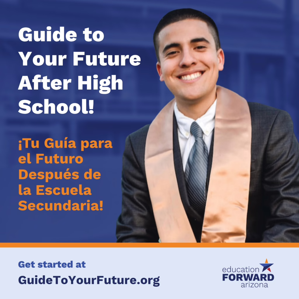 Guide To Your Future is a free, bilingual online resource that helps Arizona students and families plan for life after graduation with tools, tips, and support at every step. Whether exploring college, trade school, or other training programs, the site offers tools for students and families to understand their options, plan for costs, and connect with resources to make their goals a reality.